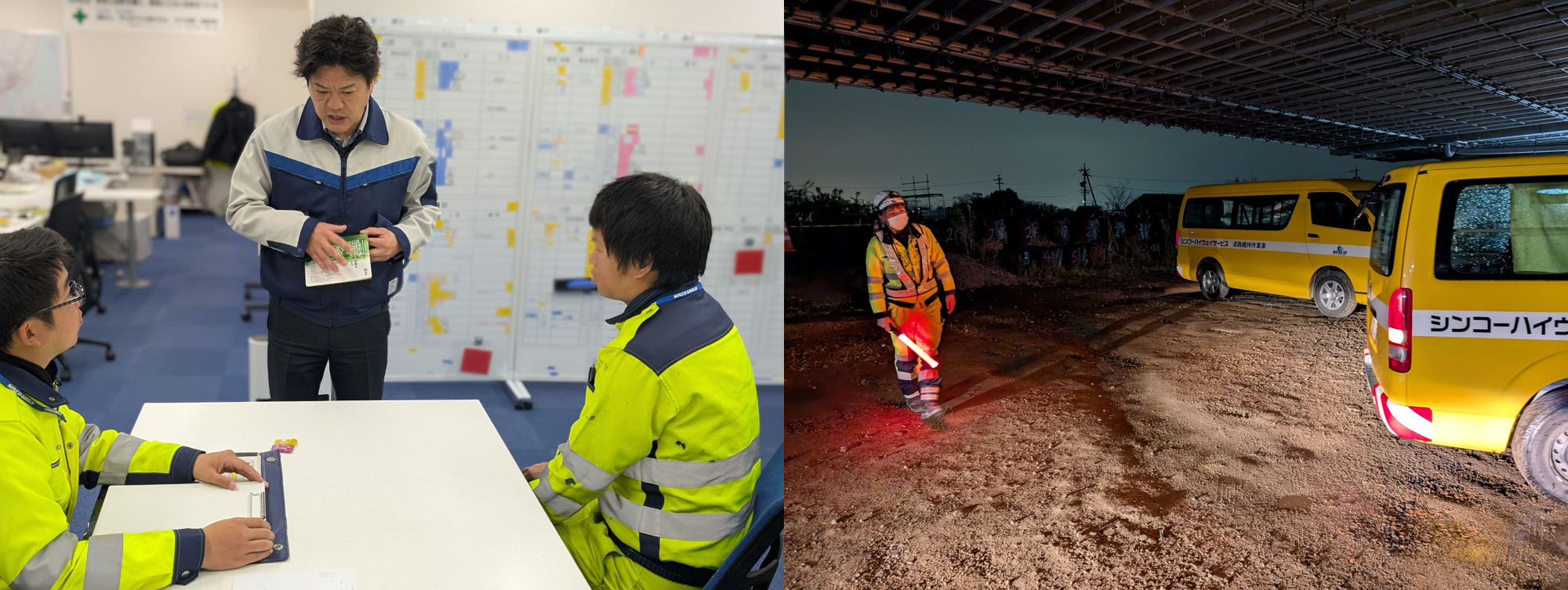 現場職員にも移動時はヘッドライト等活用して足元をよく確認して