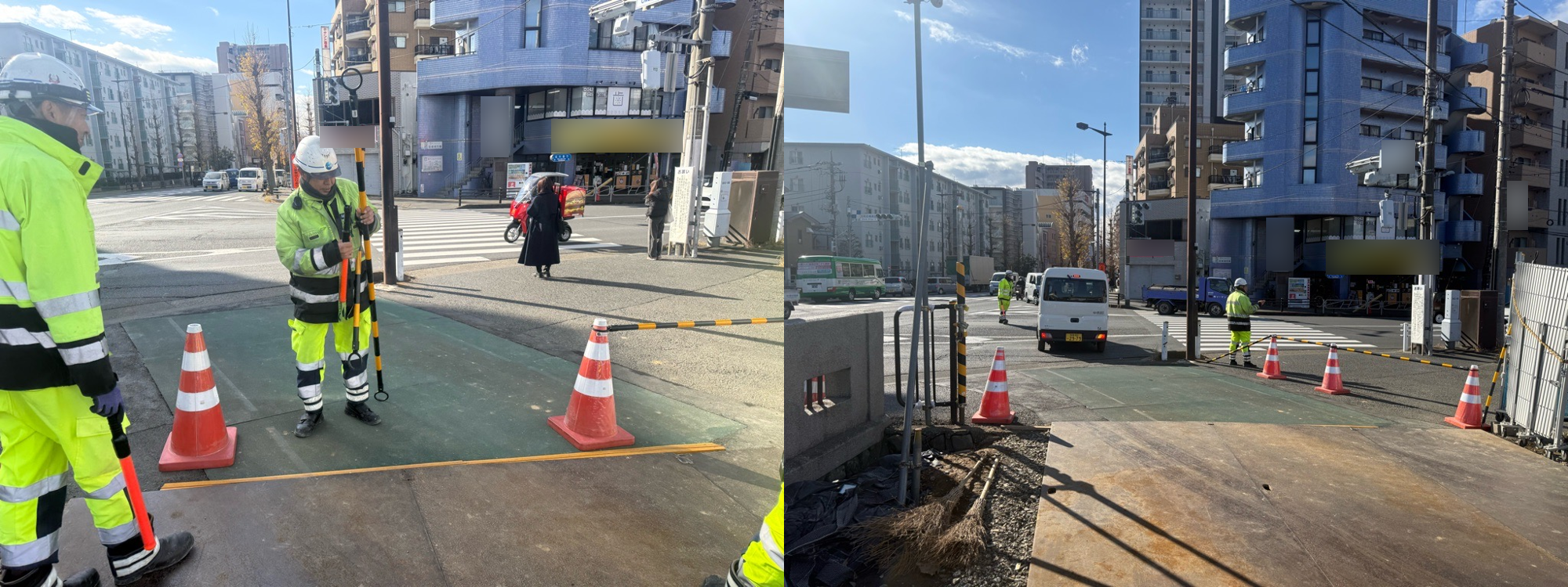 ・脇道を利用する歩行者が多いので誘導員は周囲の安全を確認し歩行者の安全を確保すること。