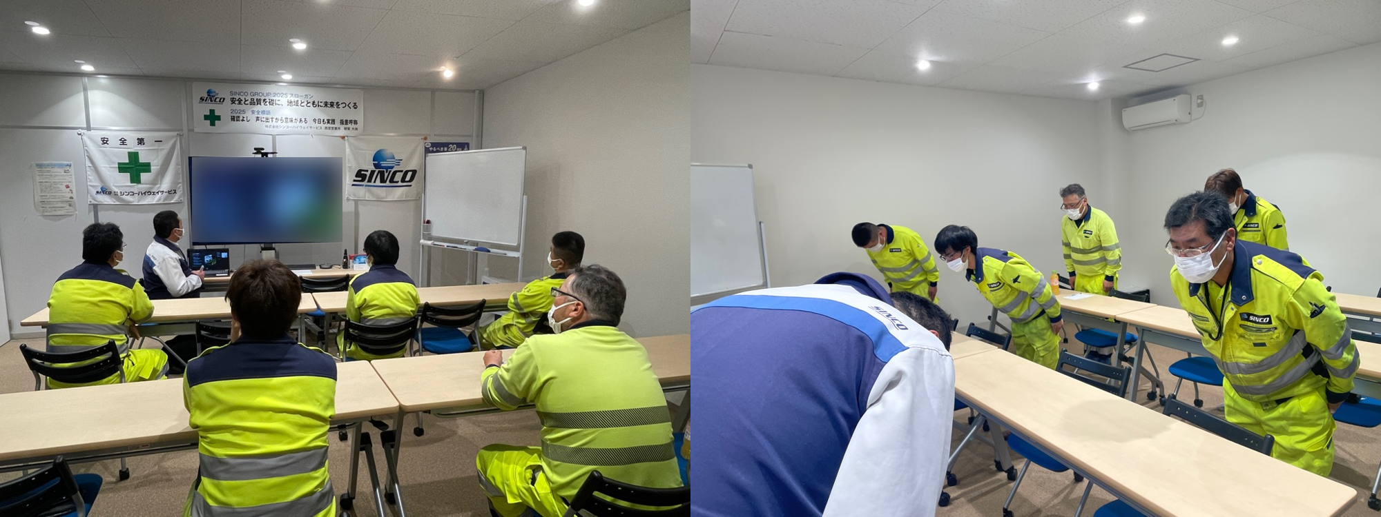 事故周知再教育では、全員が真剣な面持ちで聞いており、