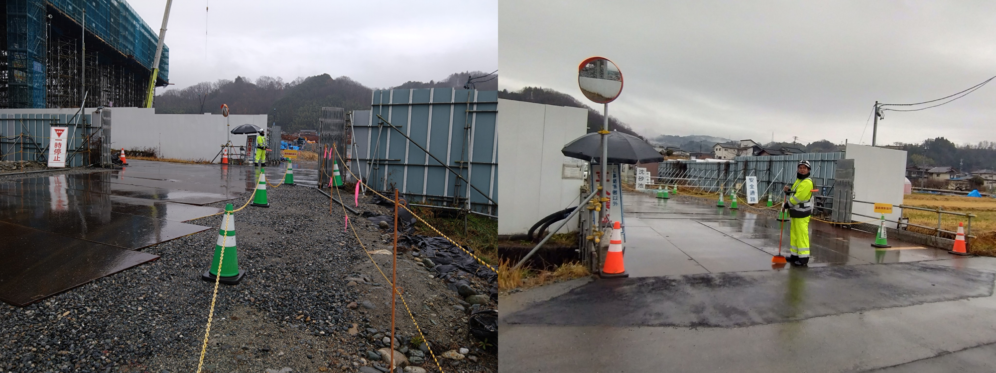 現場ヤードの出入口誘導業務になります。