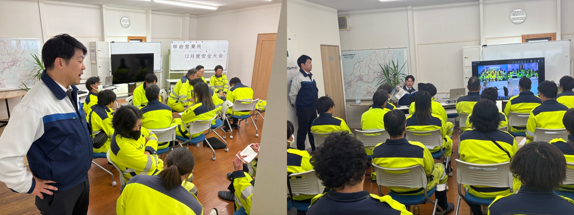 実施場所 :甲府営業所・研修室 教育実施者:山梨支社 森本支社長 安全部 坂本副課長 大月営業所 大賀所長 飯島主任 栗原副主任 甲府営業所 高部副係長 日時:2025年12月23日 09:30~12:00 天候: 天気 晴 気温 10 ℃ 湿度 55 % 教育対象者:25 名 (システムチーム 黒野)