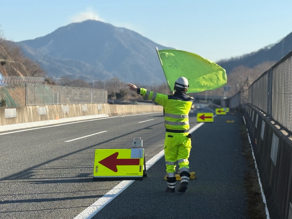 安全部パトロール 中央自動車道富士吉田線下り線走行車線規制(大月営業所)