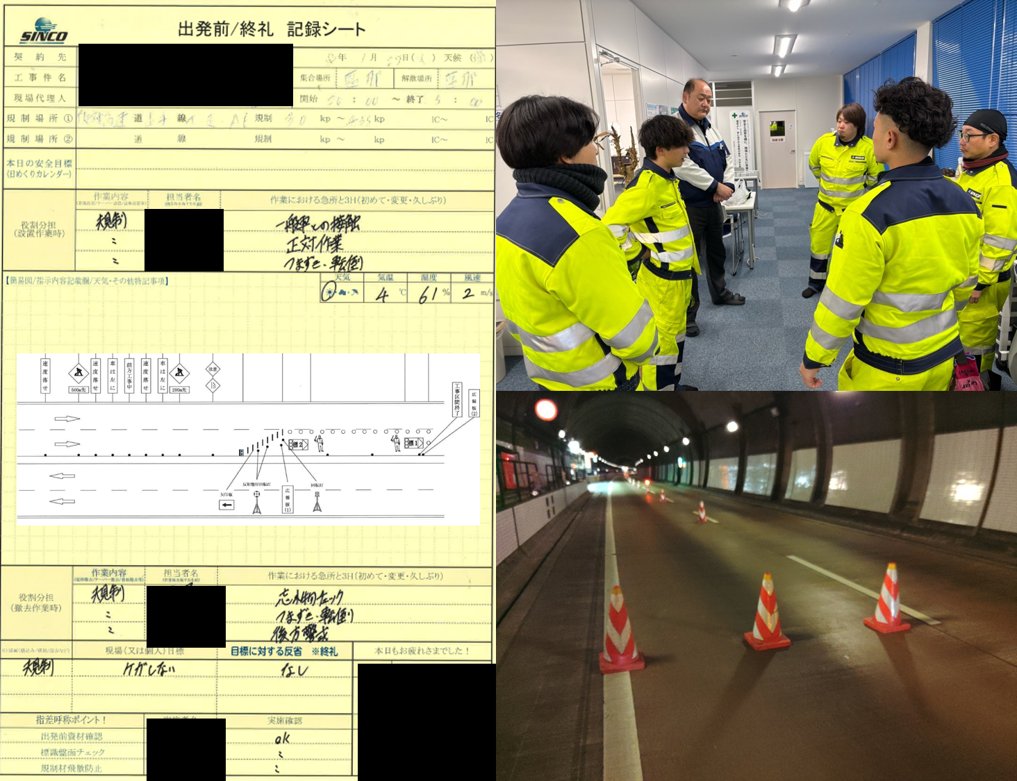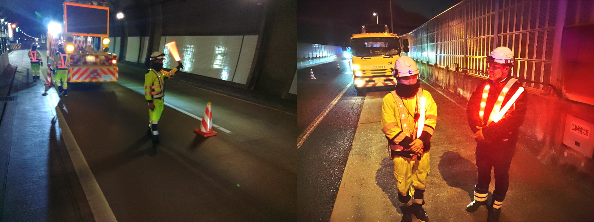 ※トンネル内の標識設置・テーパー設置につき発炎筒の使用はありません
