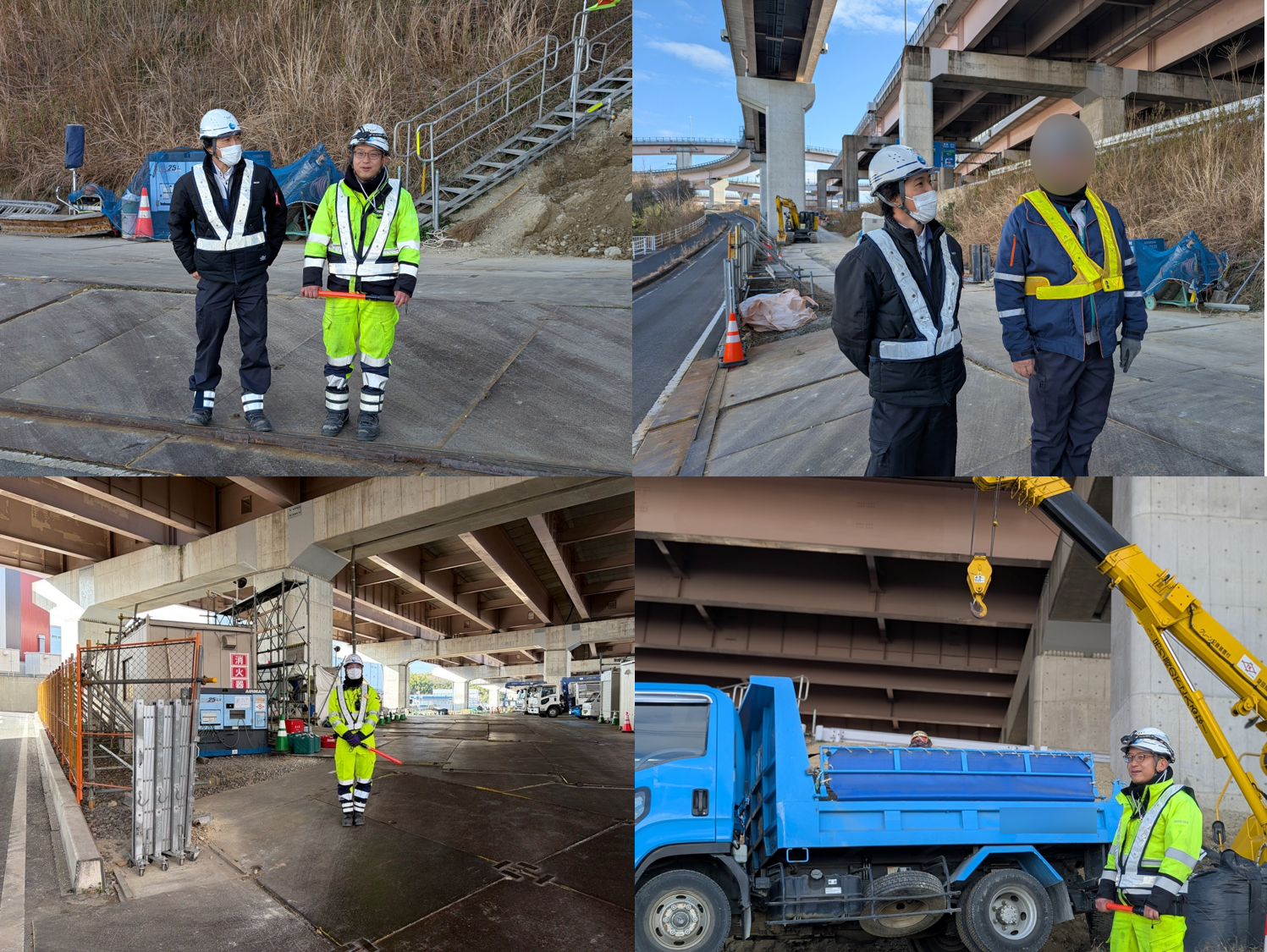 当該現場は、国道302号上空になります伊勢湾岸自動車道に対する耐震補強工事となります。
