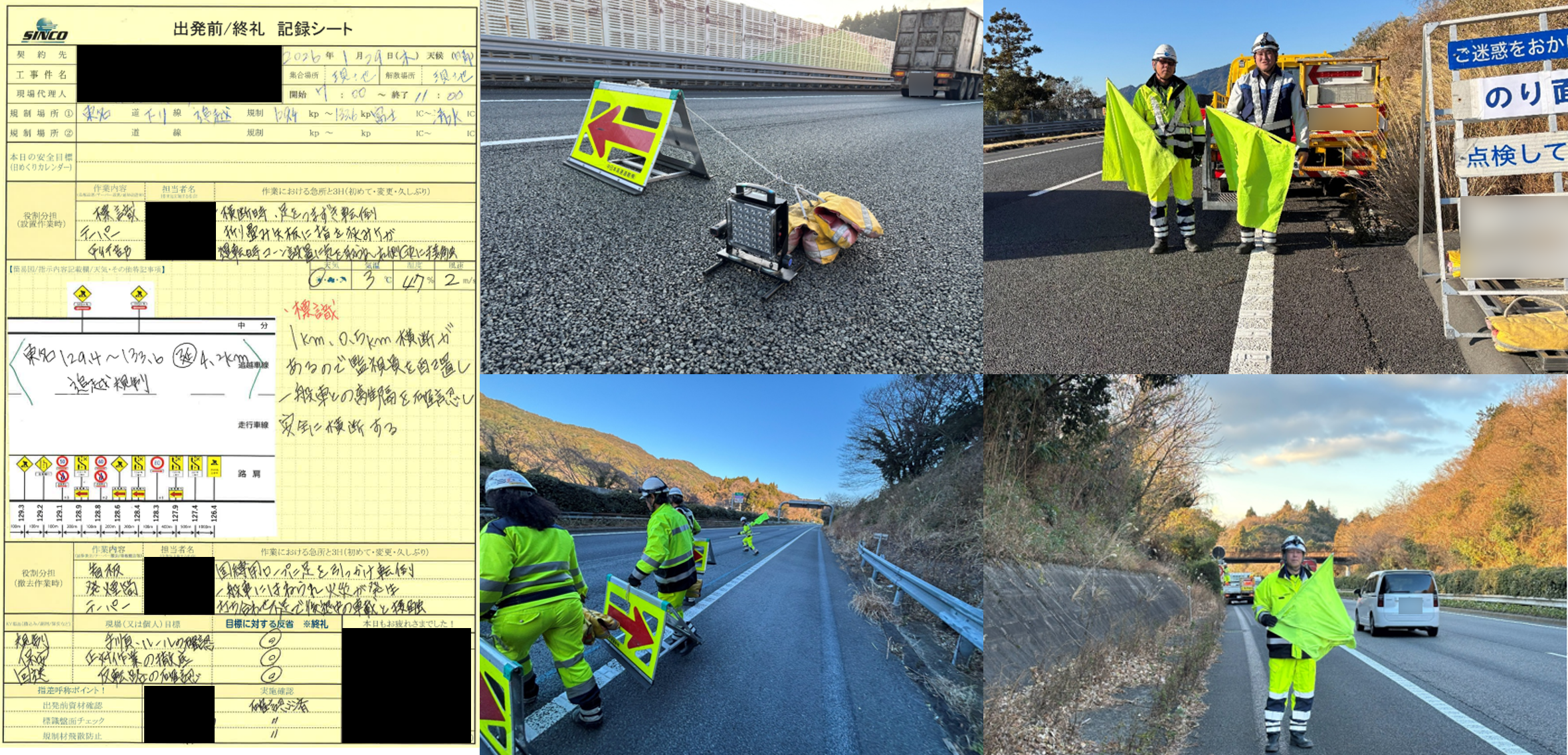 撤去で回収する際、追越車線規制では発炎筒の回収が出来ないため、
