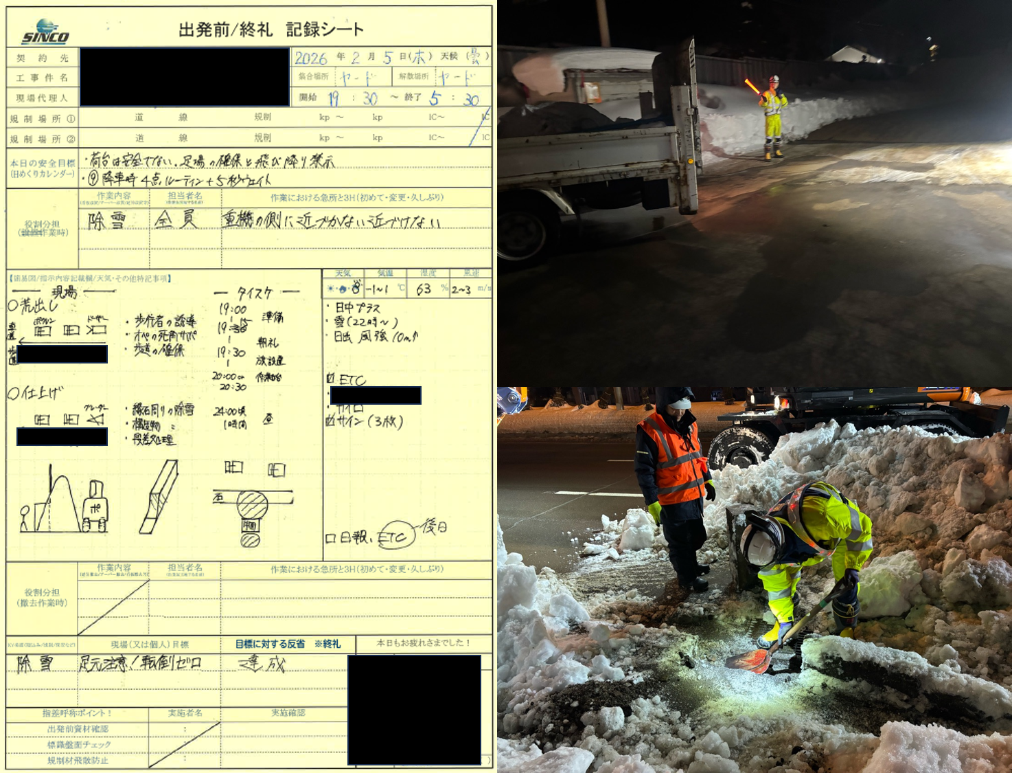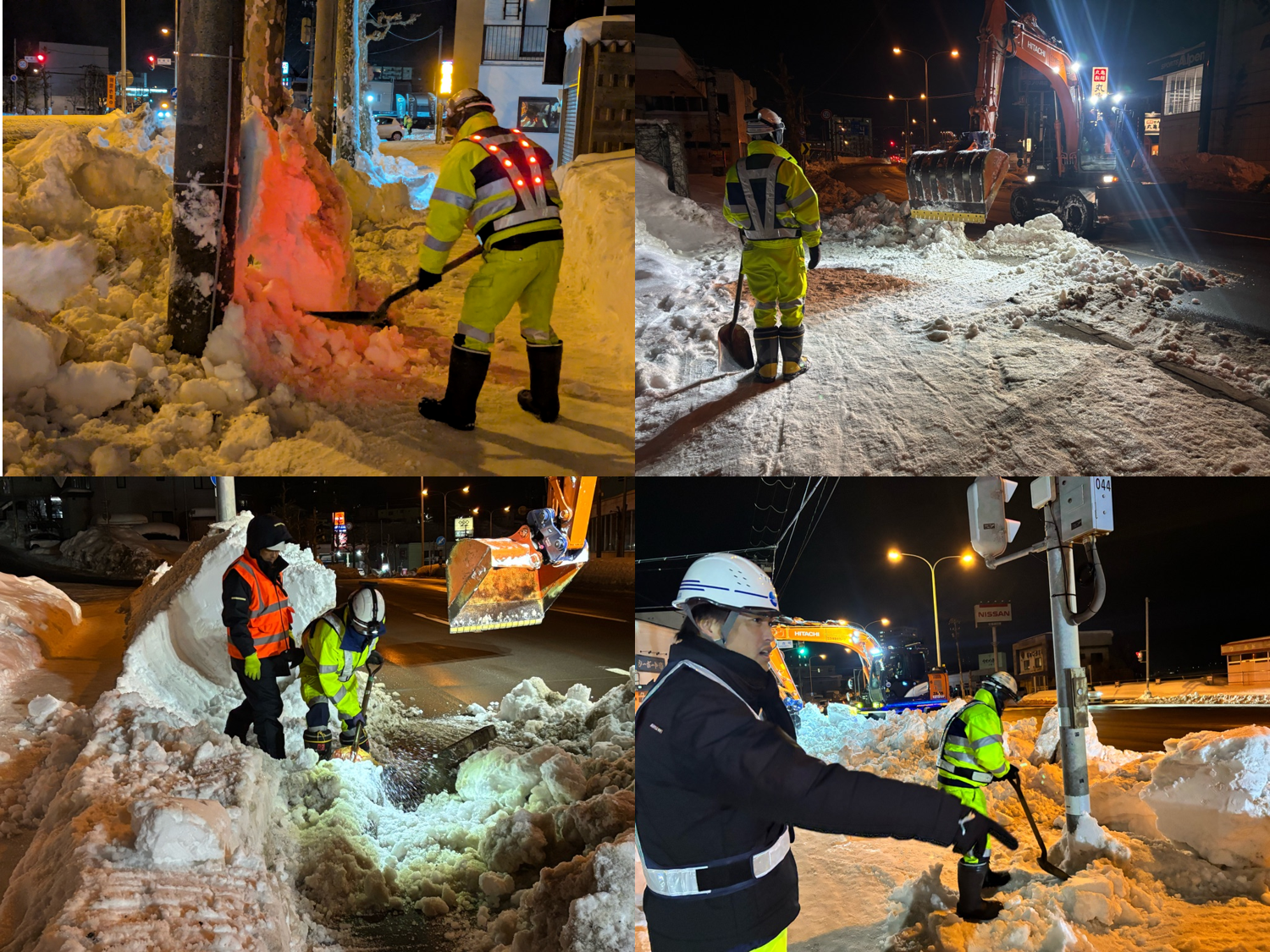 除雪作業時は移動式クレーンと近接する場面が作業上発生するため、重機オペと連携を取り