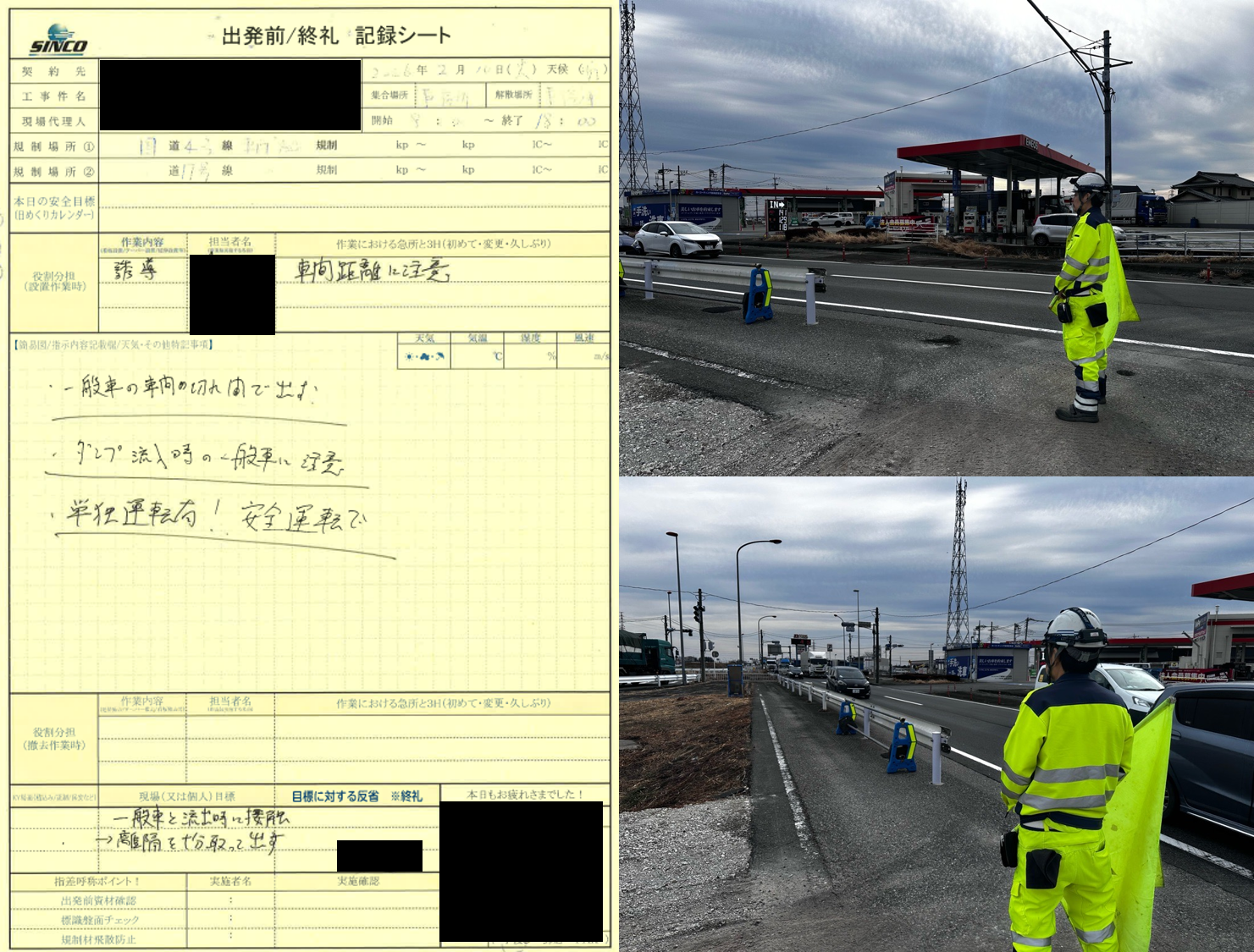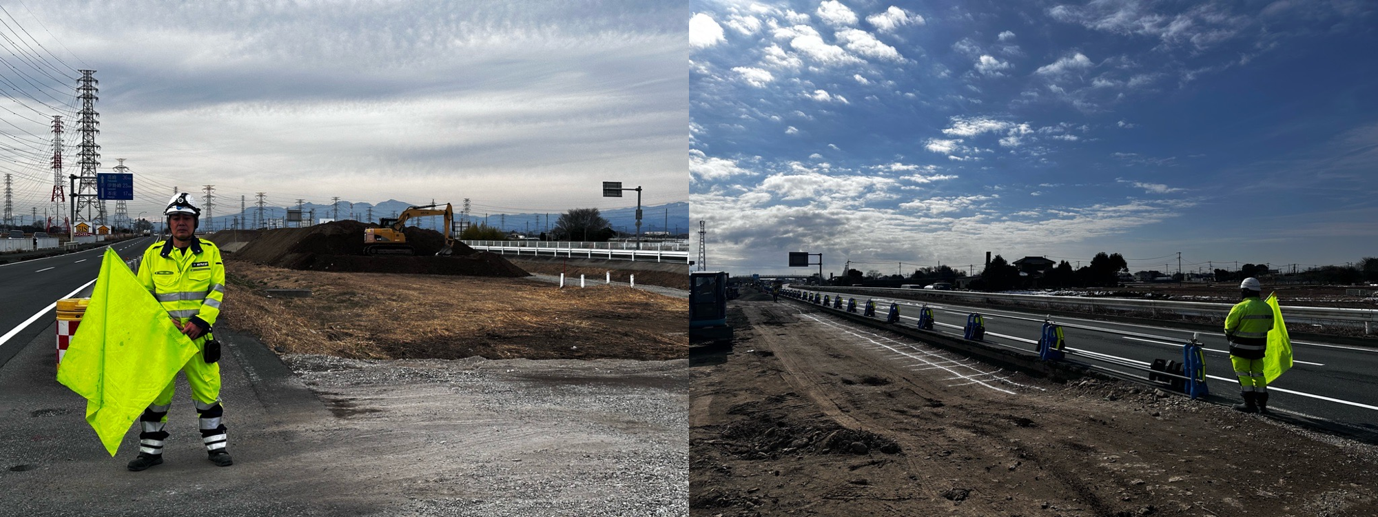 それぞれの現場で車両誘導を行う変則的な現場になります。