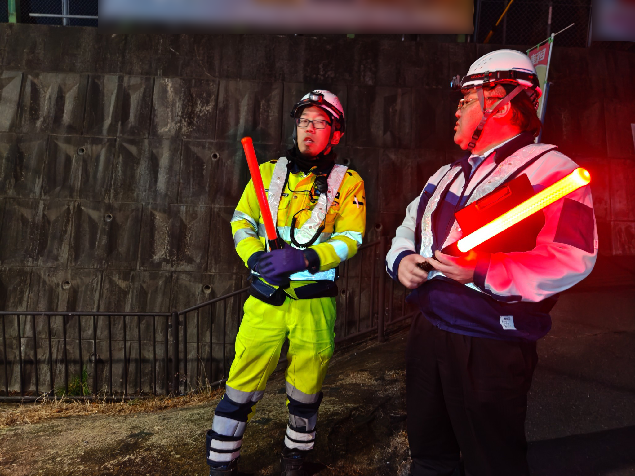営業所での打ち合わせの際、他現場の夜間現場から