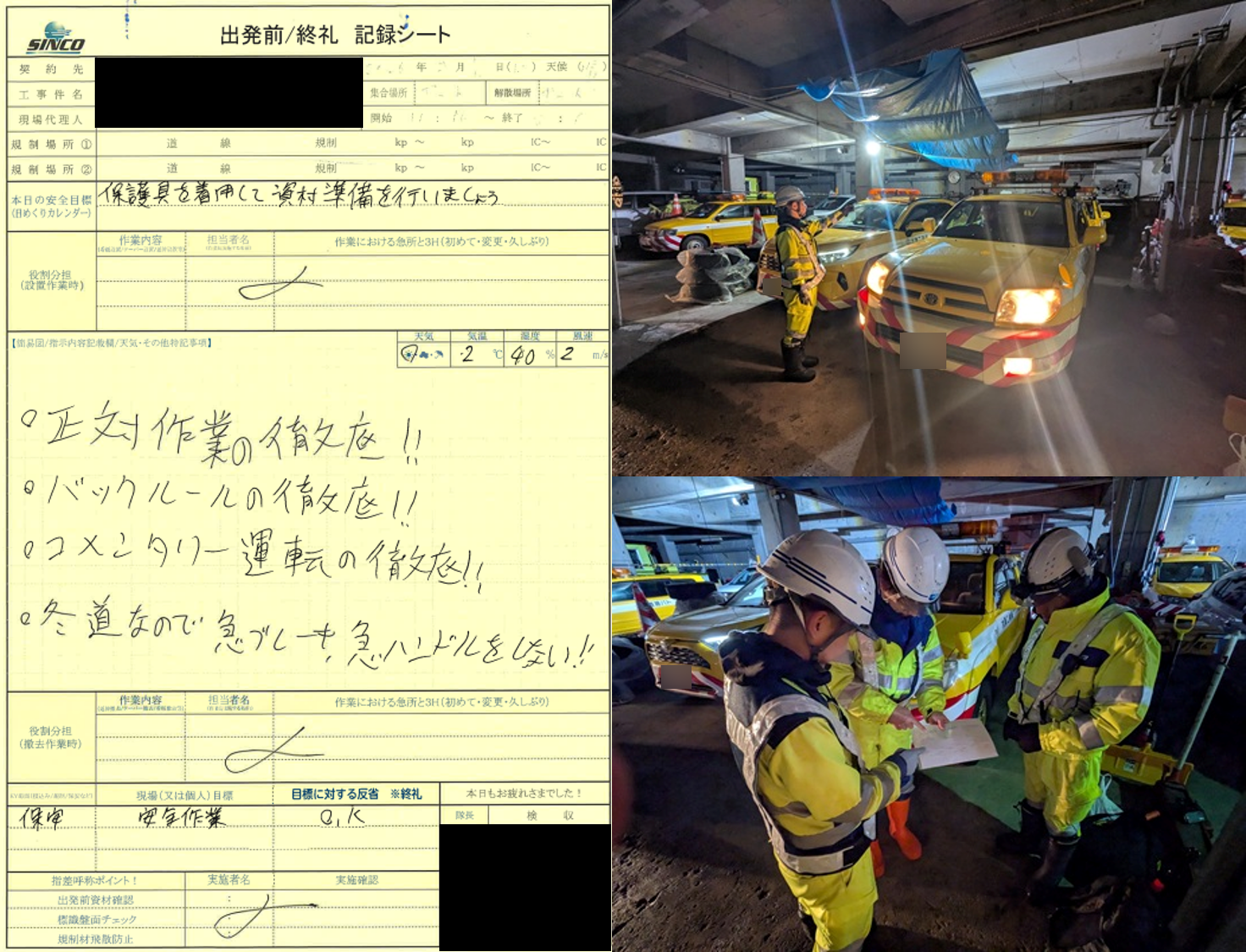 現場までは法定速度より-10km/hが徹底されており丁寧な運転が心掛けられている。