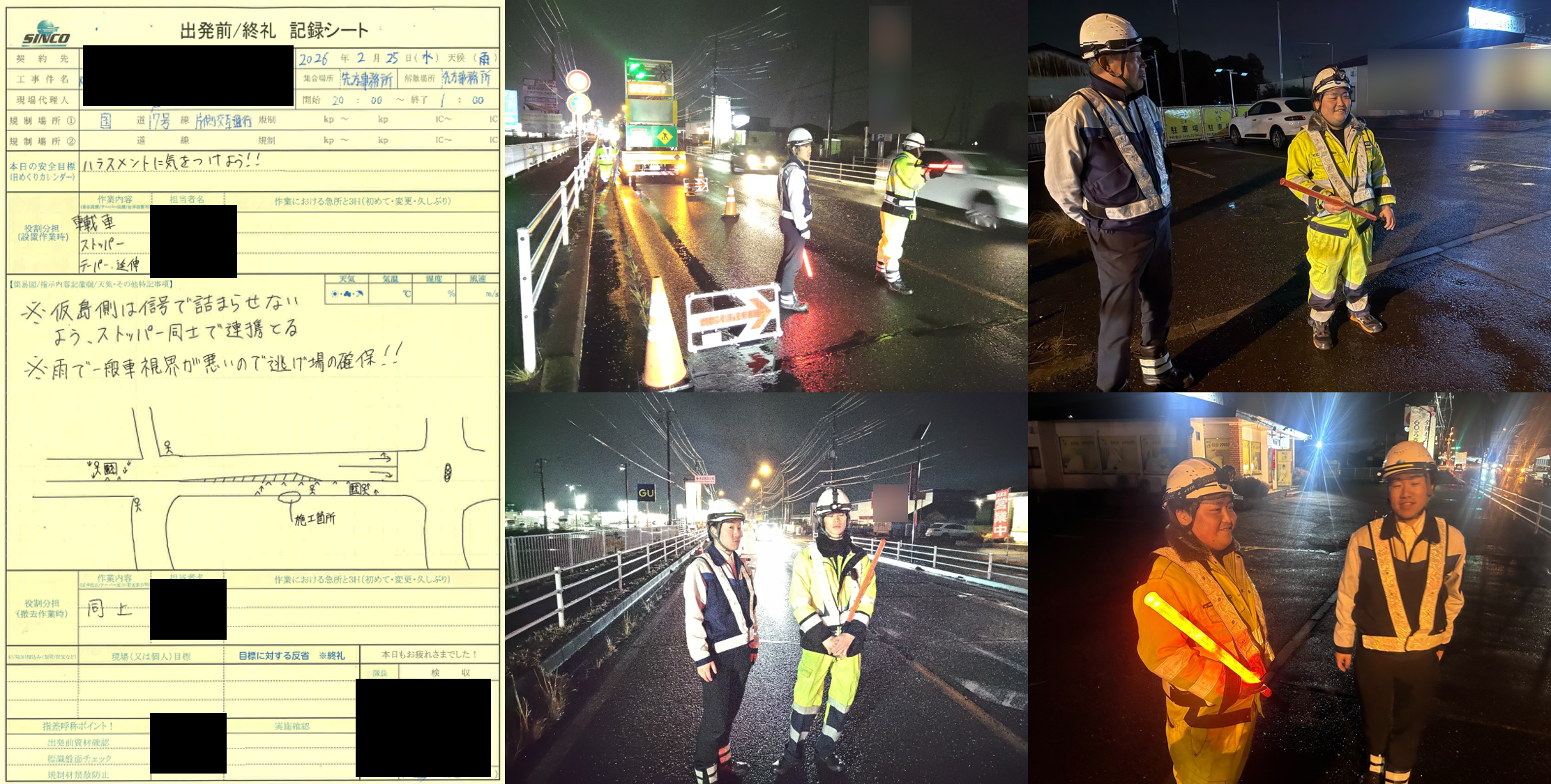 ・雨天の中での作業となるが、手足元注意・周囲確認を徹底して安全作業でお願いします