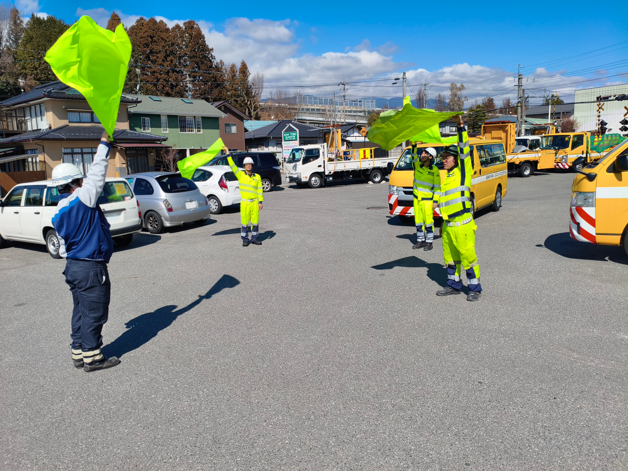 所感 3月9日の週から本格稼働ということで、 普段目の届かない車両の誘導等に焦点を当て、営業所駐車場にて実技訓練を行いました。 中堅隊員さんに協力してもらいながら新人隊員さんに旗の振り方指導ができました。 バック誘導では周囲確認、打ち合わせが忘れがちになっているので必ず行うように指導しました。