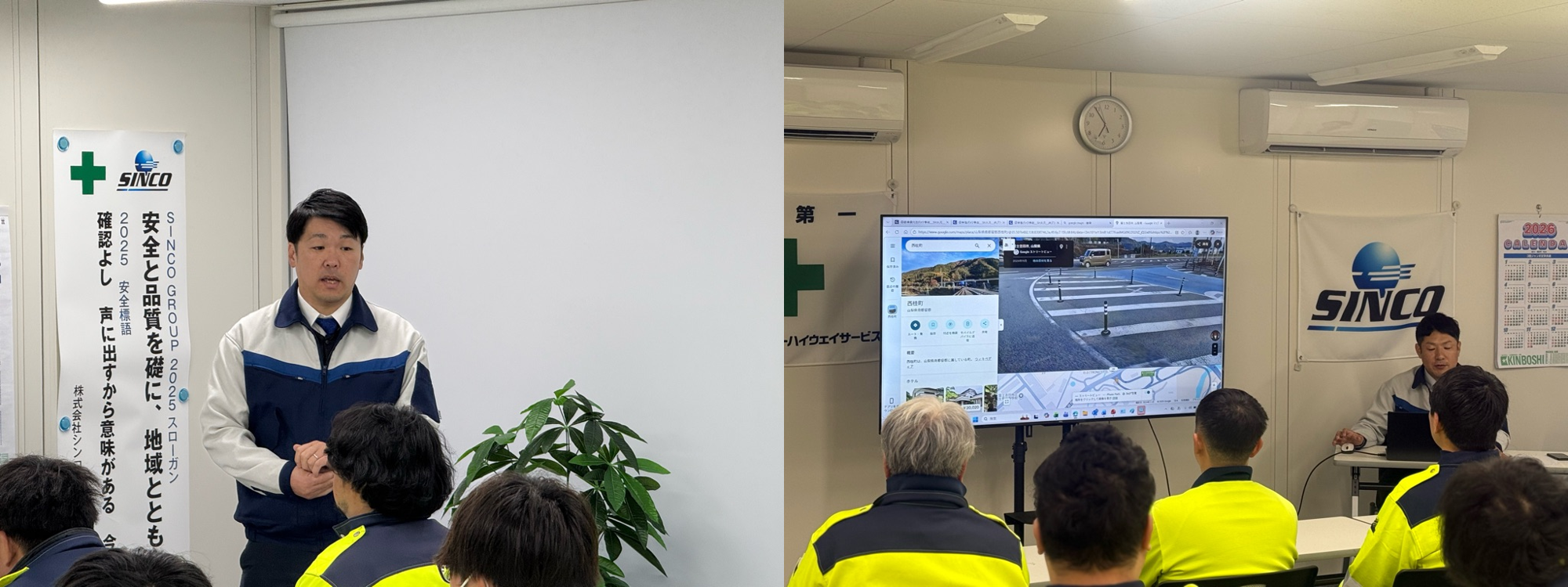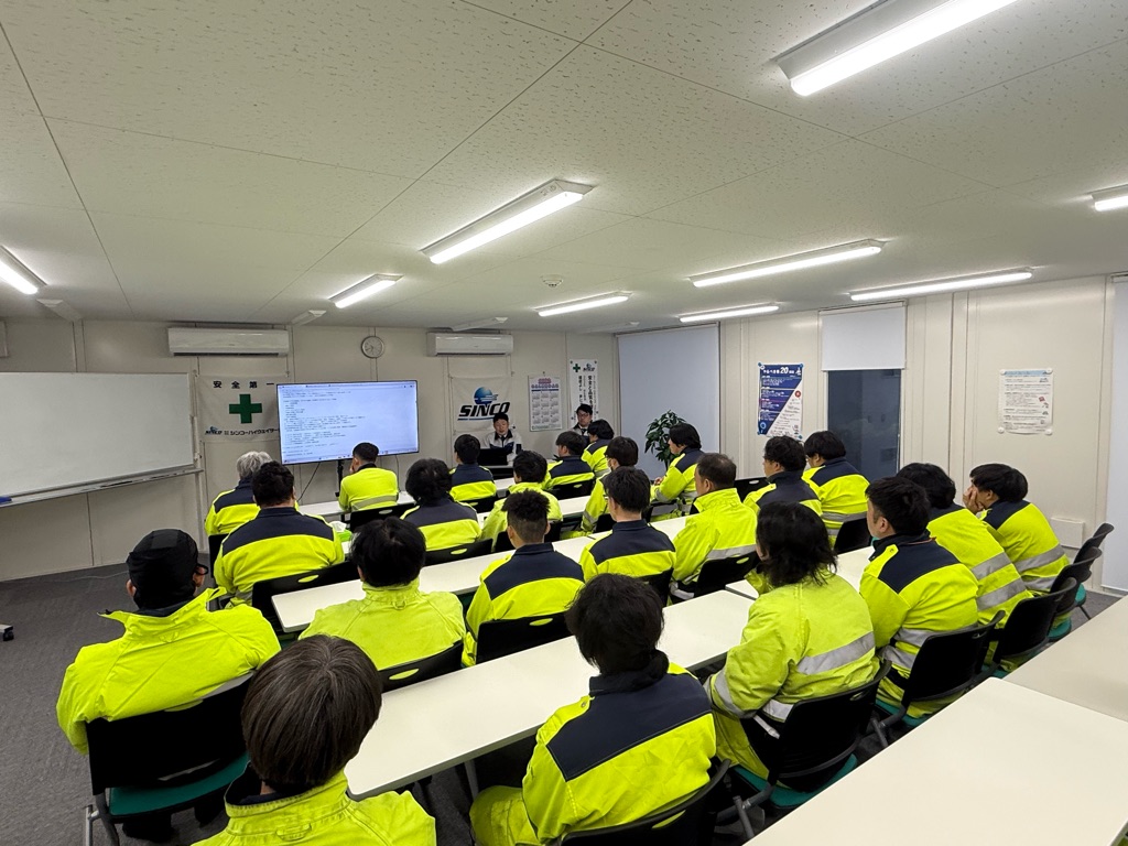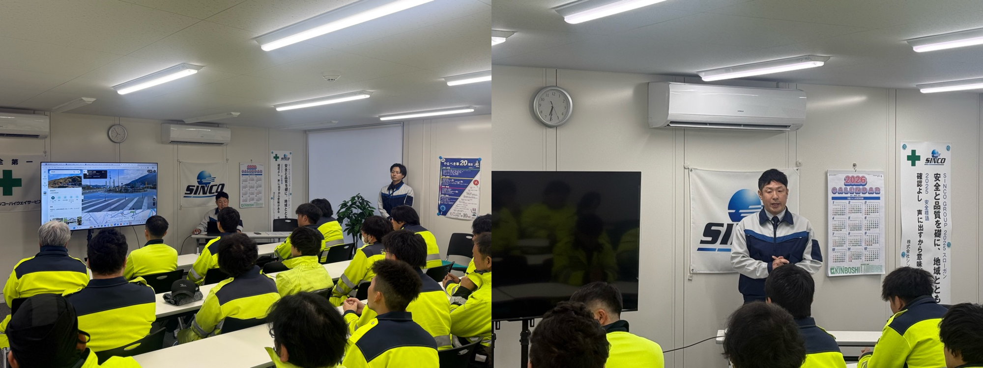 実施場所 :2階 研修室 教育実施者:山梨支社 森本支社長 大月営業所 大賀所長 飯島主任 一ノ瀬副主任 日時:2026年03月03日 06:00~07:00 天候: 天気 雨 気温 5 ℃ 湿度 90 % 教育対象者:27 名