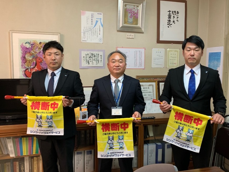 ~春の交通安全キャンペーン~ ホイッスル付き横断旗寄贈