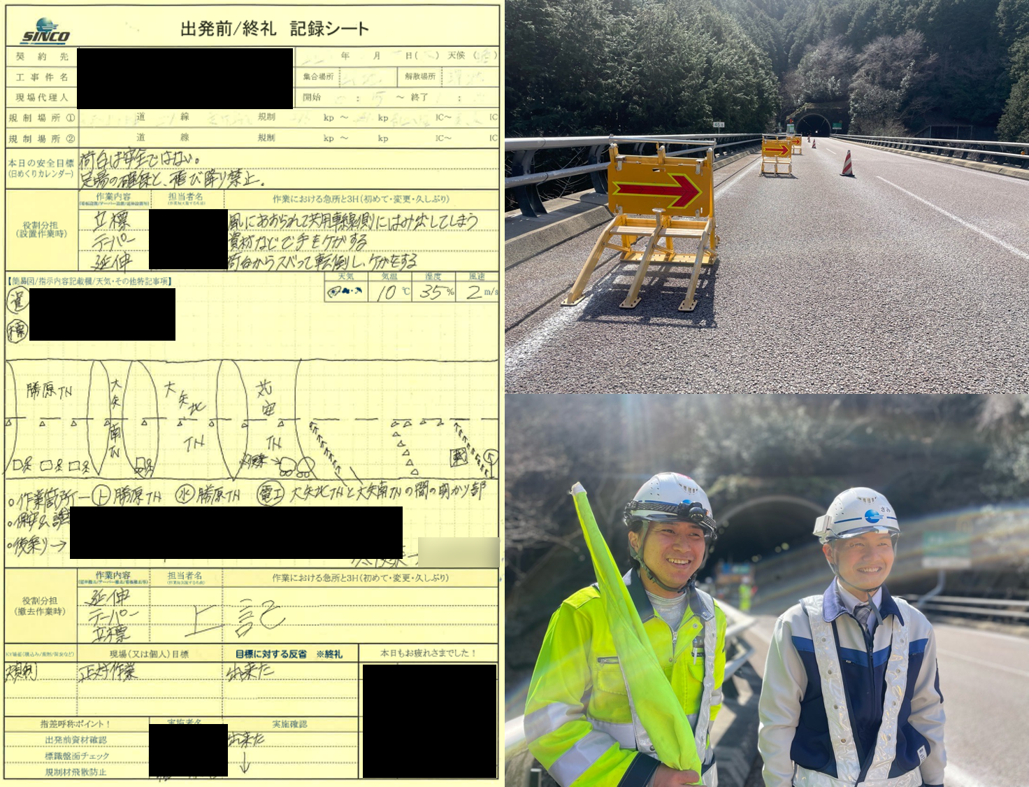 施工班は4班であるため、現場職員はそれぞれ分かれて保安業務にあたっております。