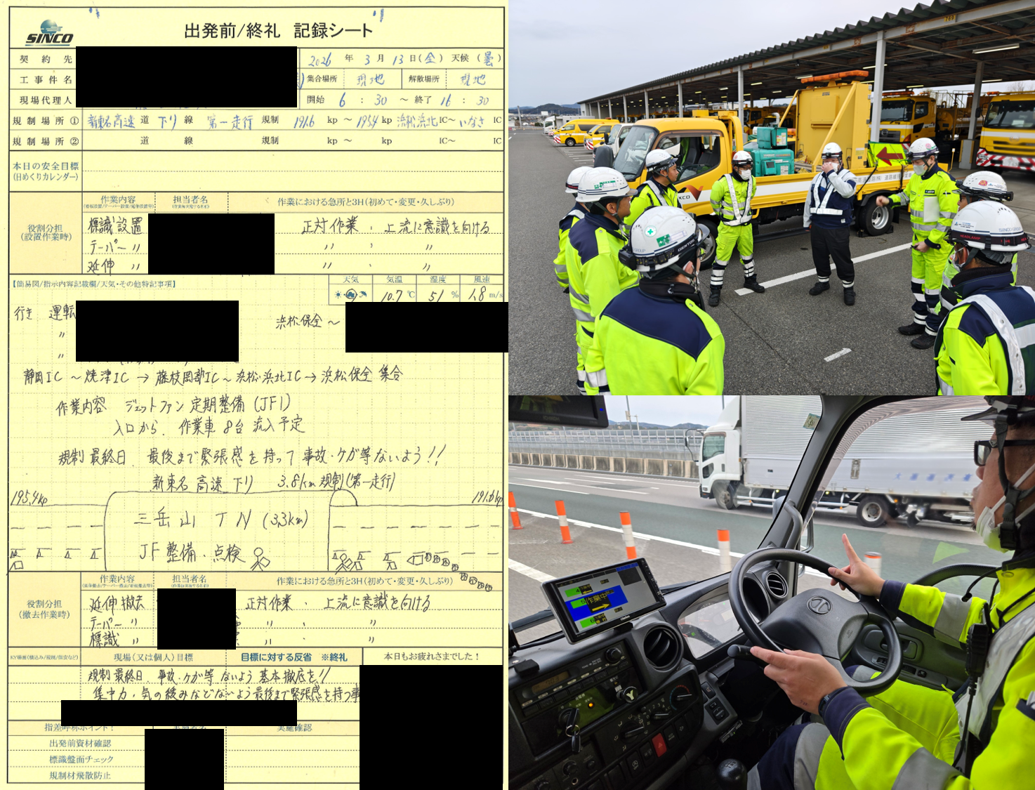 ➜浜松保全での立ち合い➜規制設置後の規制内を確認という流れでパトロールを実施致しました。