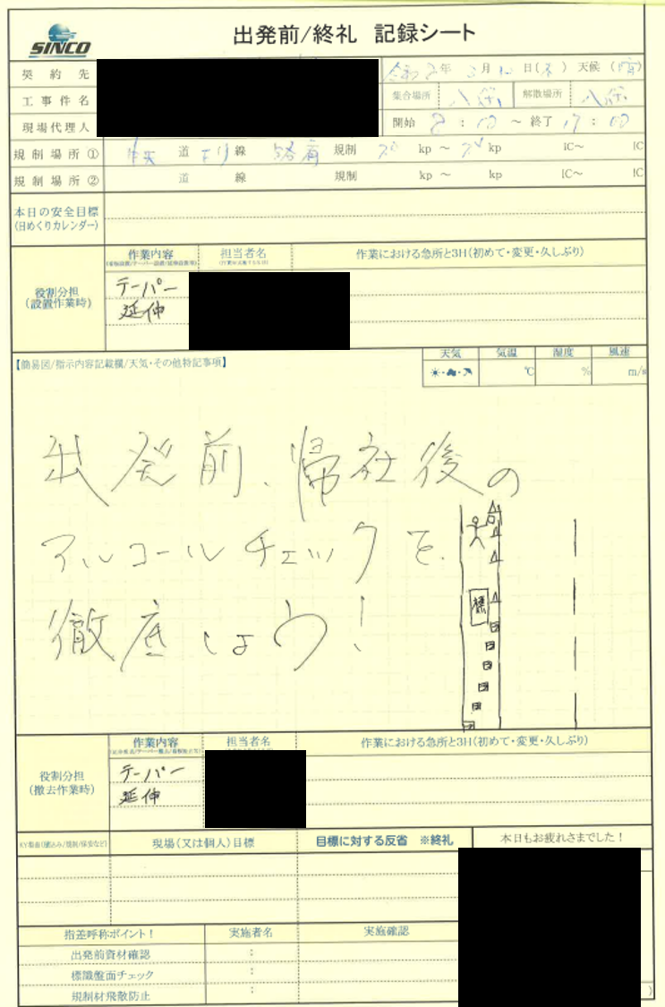 【メンテ様 本日の重点目標】移動中は車両の動きを確認し、事故防止に努めること