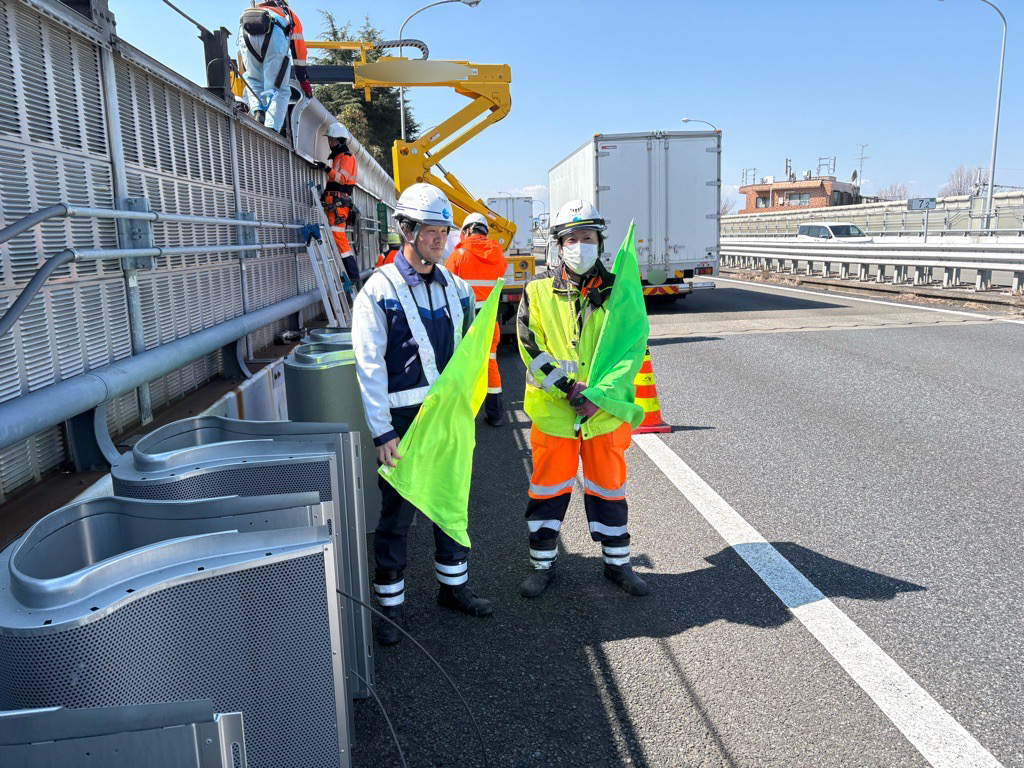 側道での、監視作業員は場所が私有地であったため、乗りこめてはいませんが