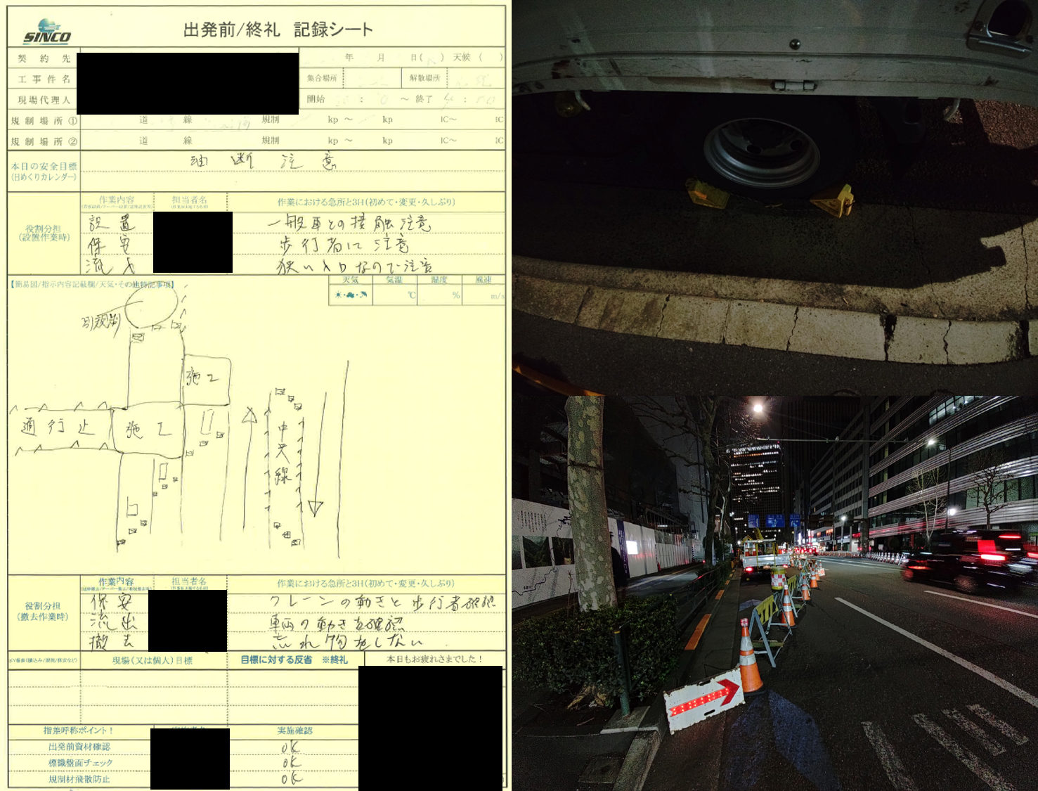 ■指差し呼称:荷台の飛散対策実施時や規制内看板の飛散対策時に指差呼称の実施を確認しました。