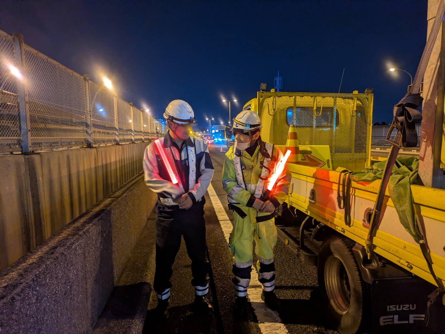 撤去時はテーパーはNEXCO管内のためバック撤去、仮テーパーは