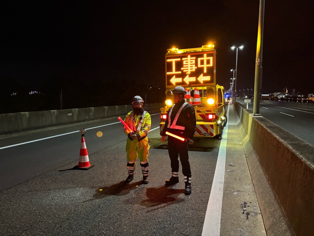 営業所パトロール 阪神高速4号湾岸線下り線追越車線規制(西宮営業所)