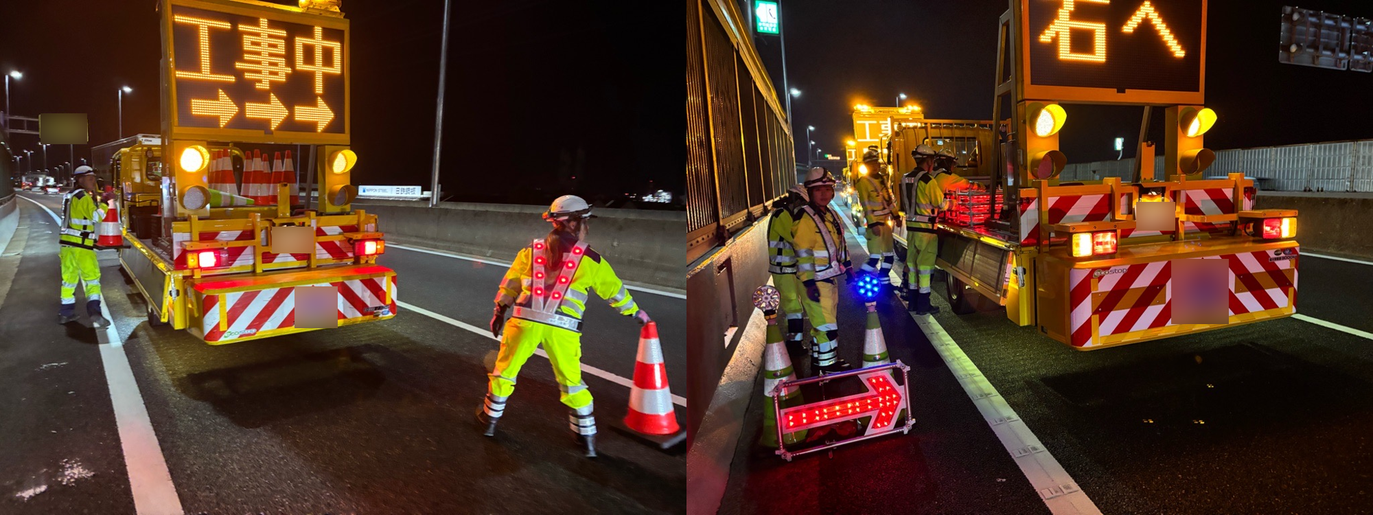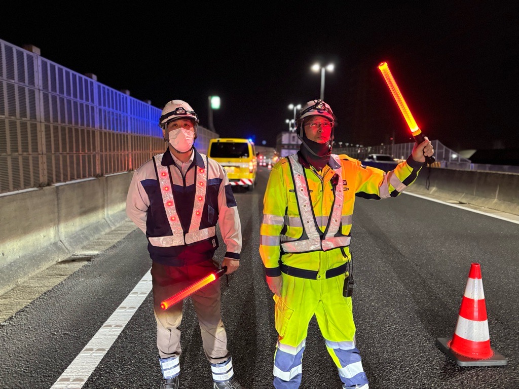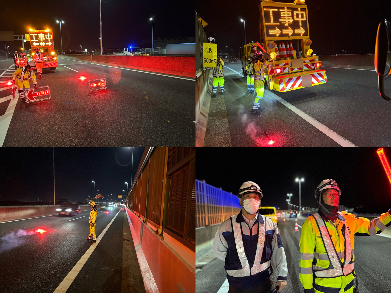 営業所パトロール 阪神高速道路4号湾岸線下り線走行車線規制(西宮営業所)