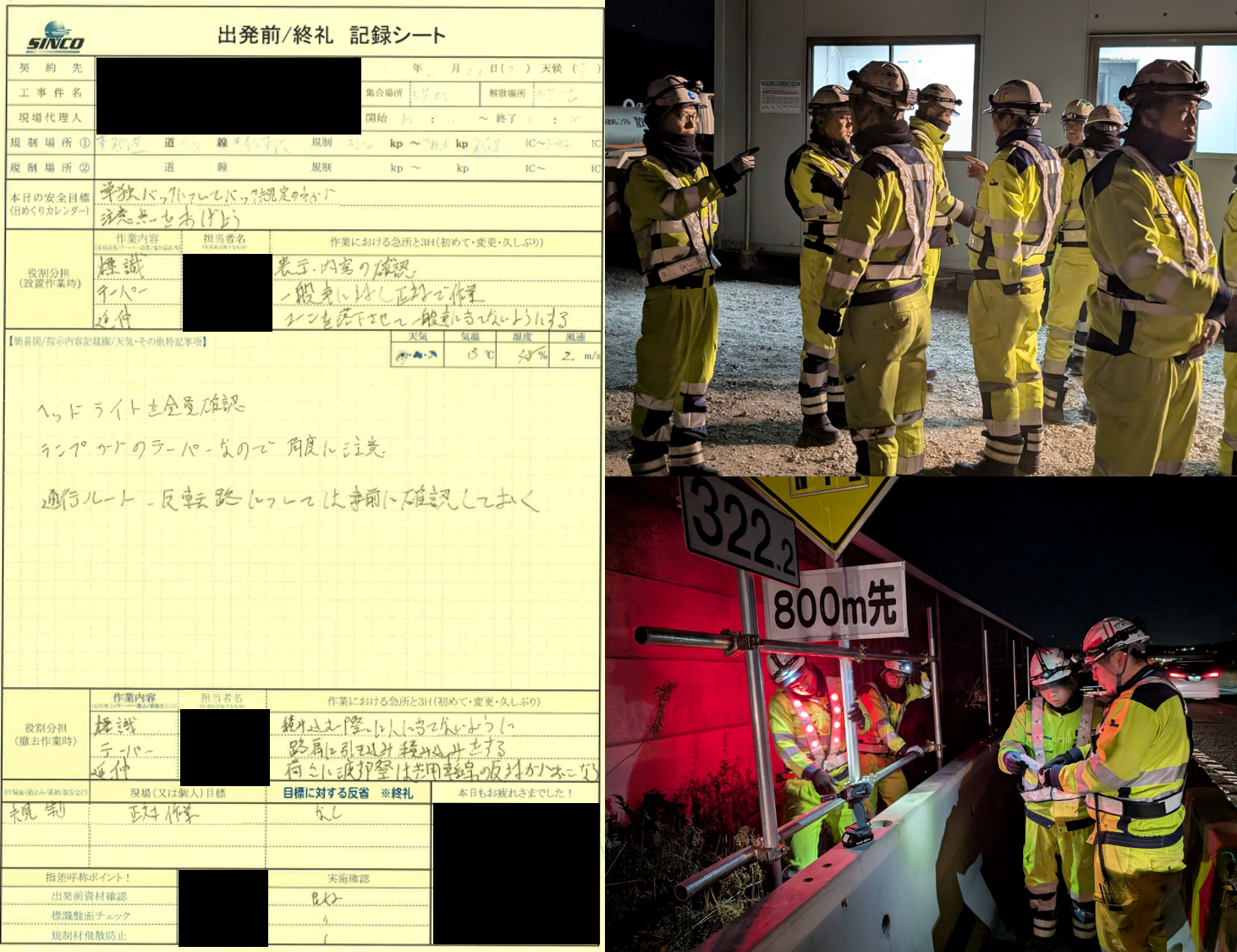 ・夜間作業に伴い誘導される方は緊張感をもって